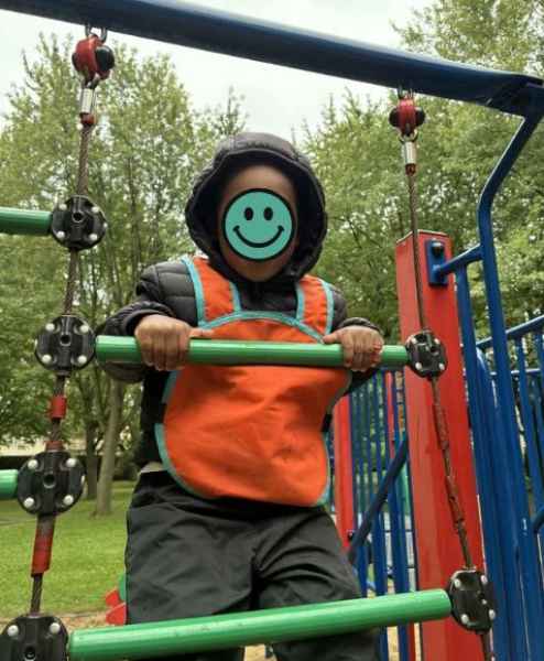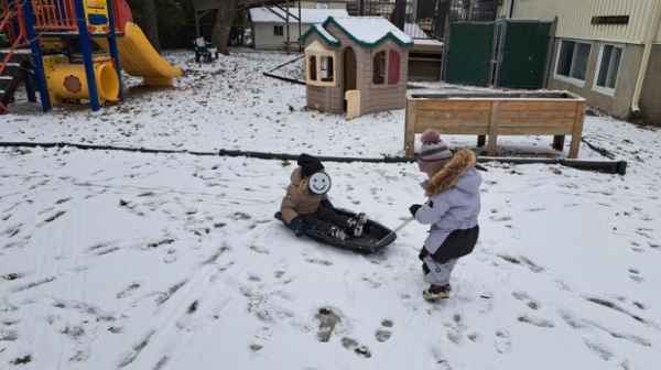 L’installation possède également une cour invitante, sécuritaire qui regorge de trésors qui raviront toute âme d’enfants : une passerelle en bois, une corde à grimper et une immense cuisine extérieure.